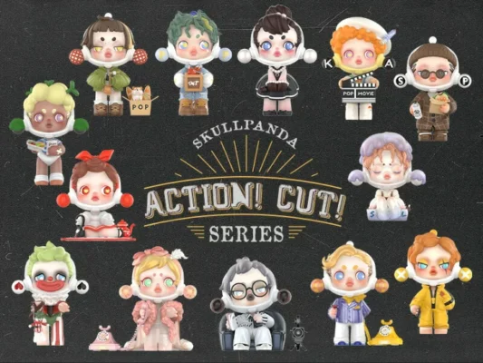「Action! Cut!」は、映画製作の舞台裏をテーマにしたシネマティックなシリーズです。監督、カメラマン、俳優、メイクアップアーティストなど、映画制作に関わる様々な役割をスカルパンダが演じており、映画産業へのオマージュが込められています。カチンコ、フィルムリール、監督椅子、ヴィンテージカメラなどの映画関連の小道具が精巧に再現され、映画ファンにはたまらないディテールが満載です。クラシックハリウッドからモダンシネマまで、様々な映画の時代とジャンルを反映したデザインは、映画史を辿るような楽しさがあります。「人生という舞台で自分らしく演じる」というメッセージも込められており、創造性と表現の自由を讃えるコレクションとなっています。ブラック&ホワイトを基調としながらアクセントカラーで引き締めたスタイリッシュなデザインが特徴です。